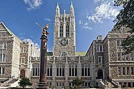 Boston College is a private institution established by the Jesuits and has maintained its Roman Catholic Jesuit religious affiliation. It was set up to educate the city’s predominantly Catholic Irish immigrant community. It is a research university known as “The Heights” to its residents, owing to its location perched in the village of Chestnut Hill in Massachusetts.