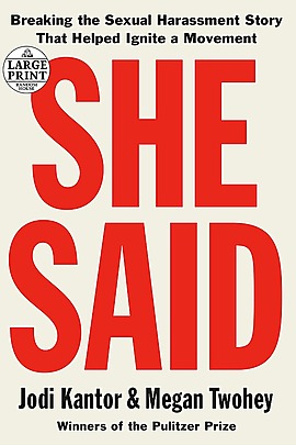 “She Said is first and foremost an account of incredible reporting, the kind that takes time, diligence and the kind of institutional support many newspapers can no longer afford. For journalist readers, it is a chance to watch experts at work. And this book is a rare view for nonjournalists into the exacting and rigorous process of quality reporting, and it acts as an implicit counterargument to rising, ambient skepticism of the press. Kantor and Twohey show the background research they ran on sources, to protect both them and the paper, the careful way they documented and substantiated information, and their extraordinary precision in acquiring proof. . . Deeply suspenseful, a kind of less swaggering All the President's Men.”