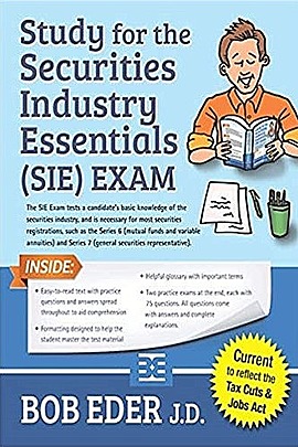 If one wishes to be a securities professional, Bob Eder’s Studies for the Securities Industry Essentials (SIE) Exam serves as a guideline for each applicant for the 75-question SIE examination. Covering the important information about the workings of the securities industry such as types of products; exchange-traded funds, including leveraged and inverse ETFs; put and call options, including in-the-money and out-of-the-money options; principles of bonds, including different types of bonds and yields; risks of investing; regulatory agencies such as FINRA and the SEC; communications with customers; and prohibited dealings, to name just a few.