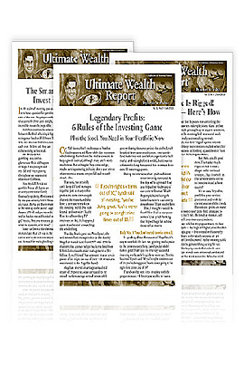 Ultimate Wealth Report provides subscribers with the means to protect and grow their wealth no matter the turmoil of the financial markets. Its primary focus is on riding trends safely. Within every emerging trend there is a safe haven where low-risk gains are available. When played properly, each sector has a moment on the calendar when momentum predictably swings up or down. Ultimate Wealth also helps you spot the outright game-changing trends, and the cascading effect these changes provide in the form of amazing lower-risk investing opportunities that offer an absolute upside.
