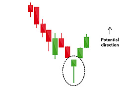 A Bullish Hammer occurs when a stock trades sharply lower, then reverses sharply.