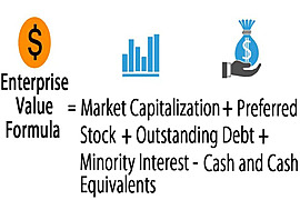 Enterprise Value (EV) measures the market value of a business by adding the value of its debt and equity and then subtracting cash.